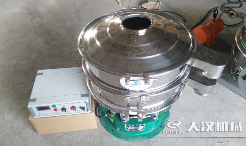 硅微粉超声振动筛是将220V、50Hz或110V、60Hz电能转化为18KHz的高频电能,输入超声换能器,将其变成18KHz机械振动,从而达到筛分和清网的目的。大汉振动筛厂家生产的超声波振动筛是在旋振筛的基础上,在筛网上面叠加一个高频率低振幅的超声振动波,微细粉体接受巨大的超声加速度,使筛面上的物料始终保持悬浮状态,从而抑制粘附、摩擦、平降、楔入等堵网因素,从而解决了强吸附性、易团聚、高静电、高精细、高密度、轻比重等筛分难题,使微细粉筛分不再成为难事,特别适合高品质、精细粉体的用户使用。