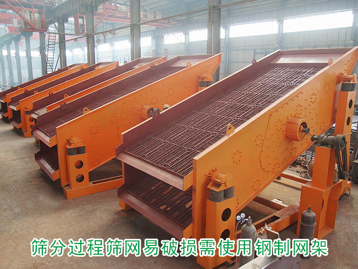 使用矿用筛分机进行筛分时,因其筛分的物料会有一定的的重量,使用普通网架容易造成破损的问题,所以需要使用钢质网架来代替木质网架,增加网架和筛网的承受能力,更换为钢制网架的大型矿用振动筛不仅换网比较方便,更可以延长筛网、筛机的使用寿命。