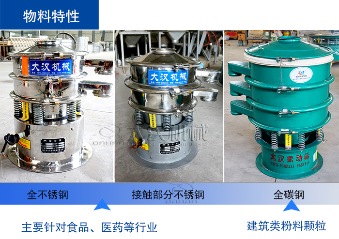 您可根据物料特性主要是决定您是适用哪种材质的筛分机